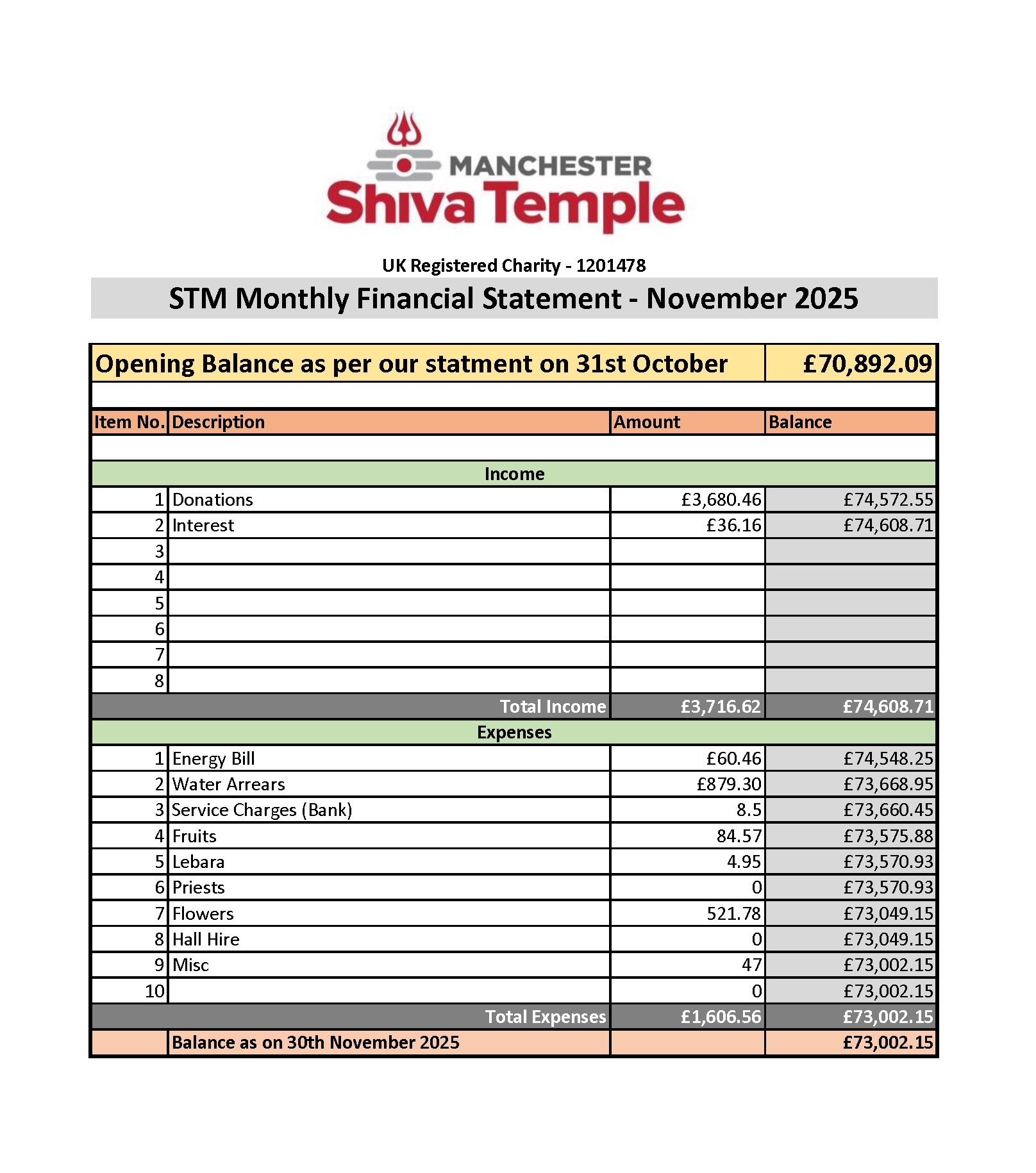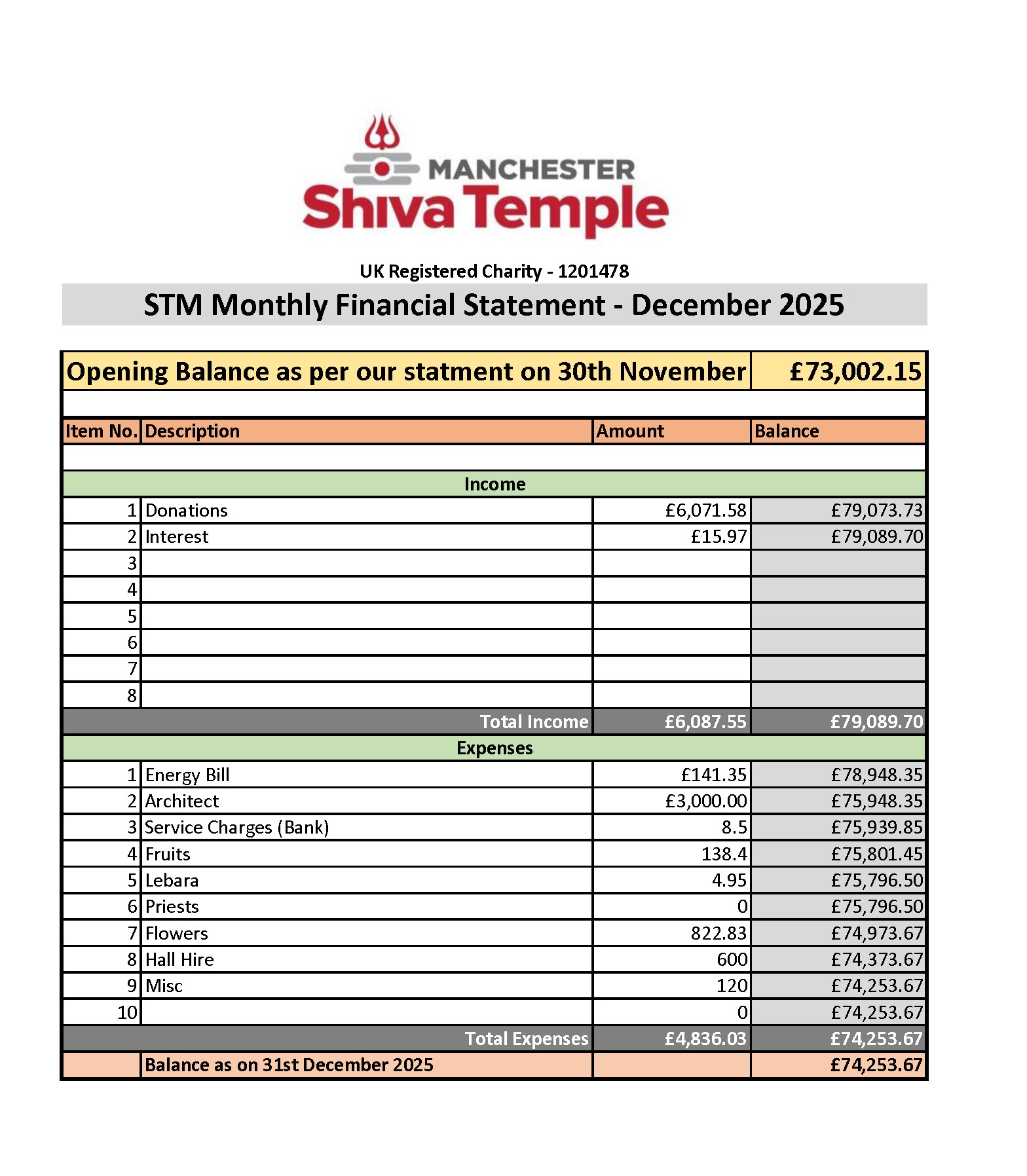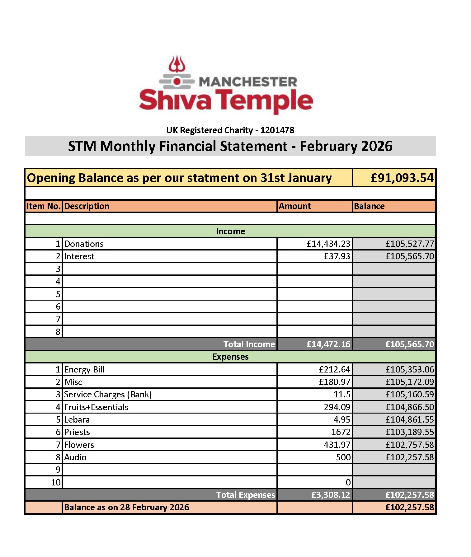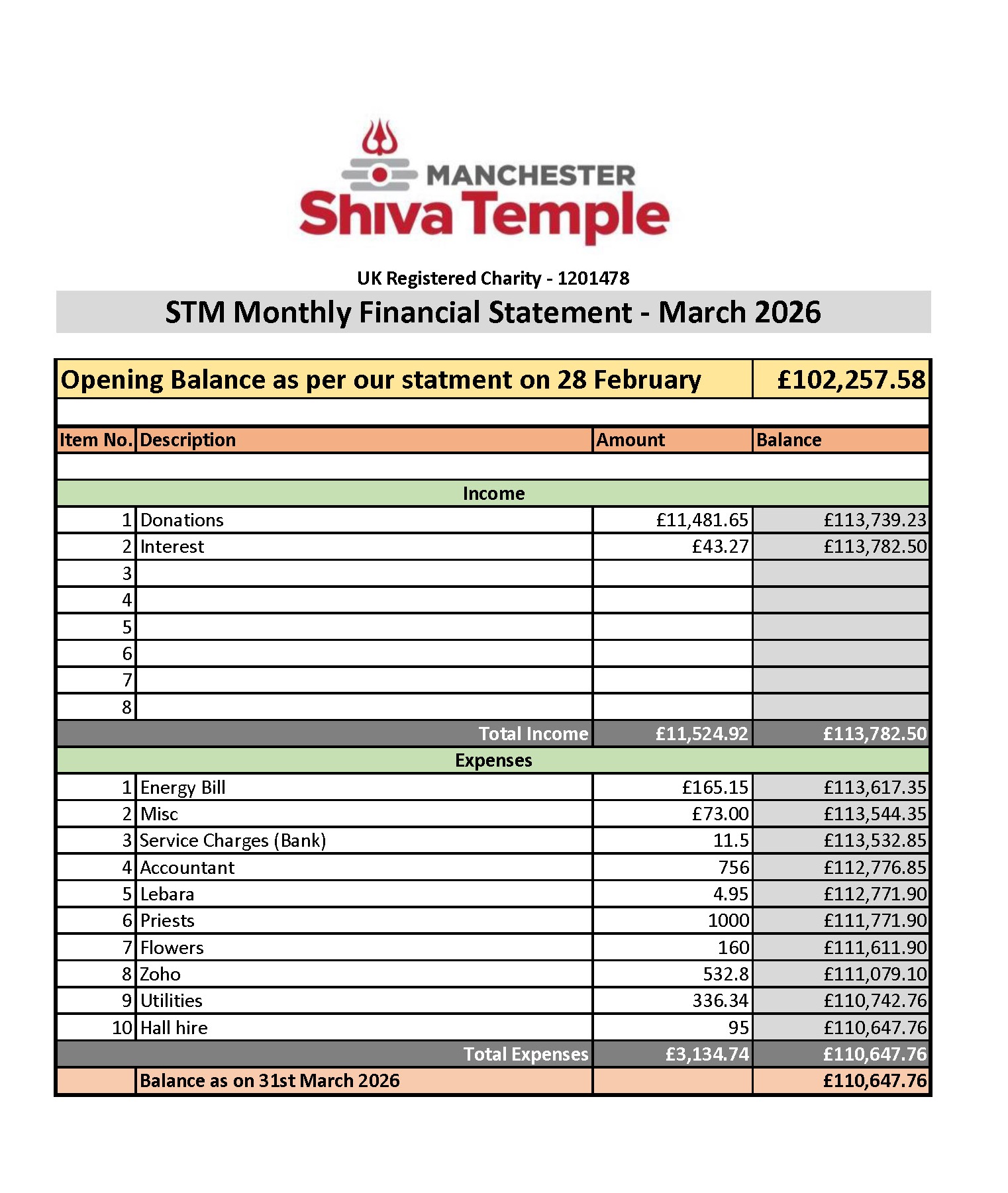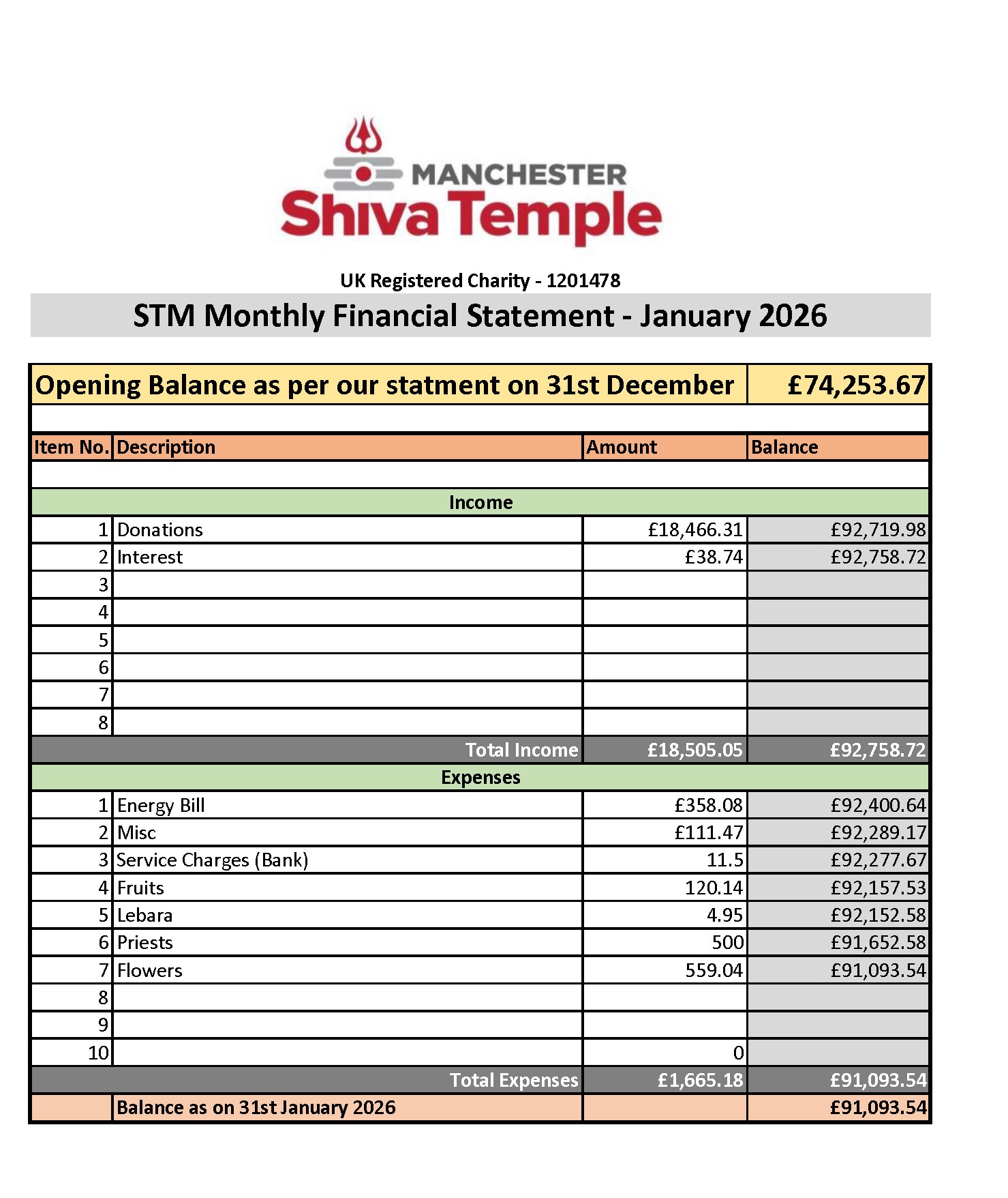 Temple Financial Statements